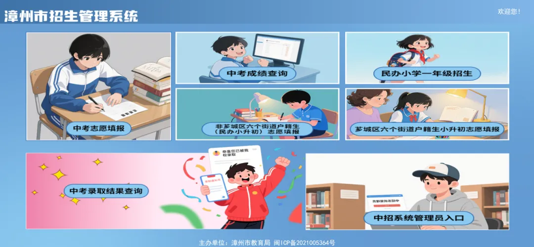 全市统一使用中招录取信息管理平台《漳州市招生管理系统》,负责组织管理全市所有普通高中学校及在本地区招生的中职本科“3+4”、五年制高职院校、中职学校(含技工院校)招生录取工作。招生录取时间进程按照《2025年漳州市中招录取批次安排表》(见附件4)进行。