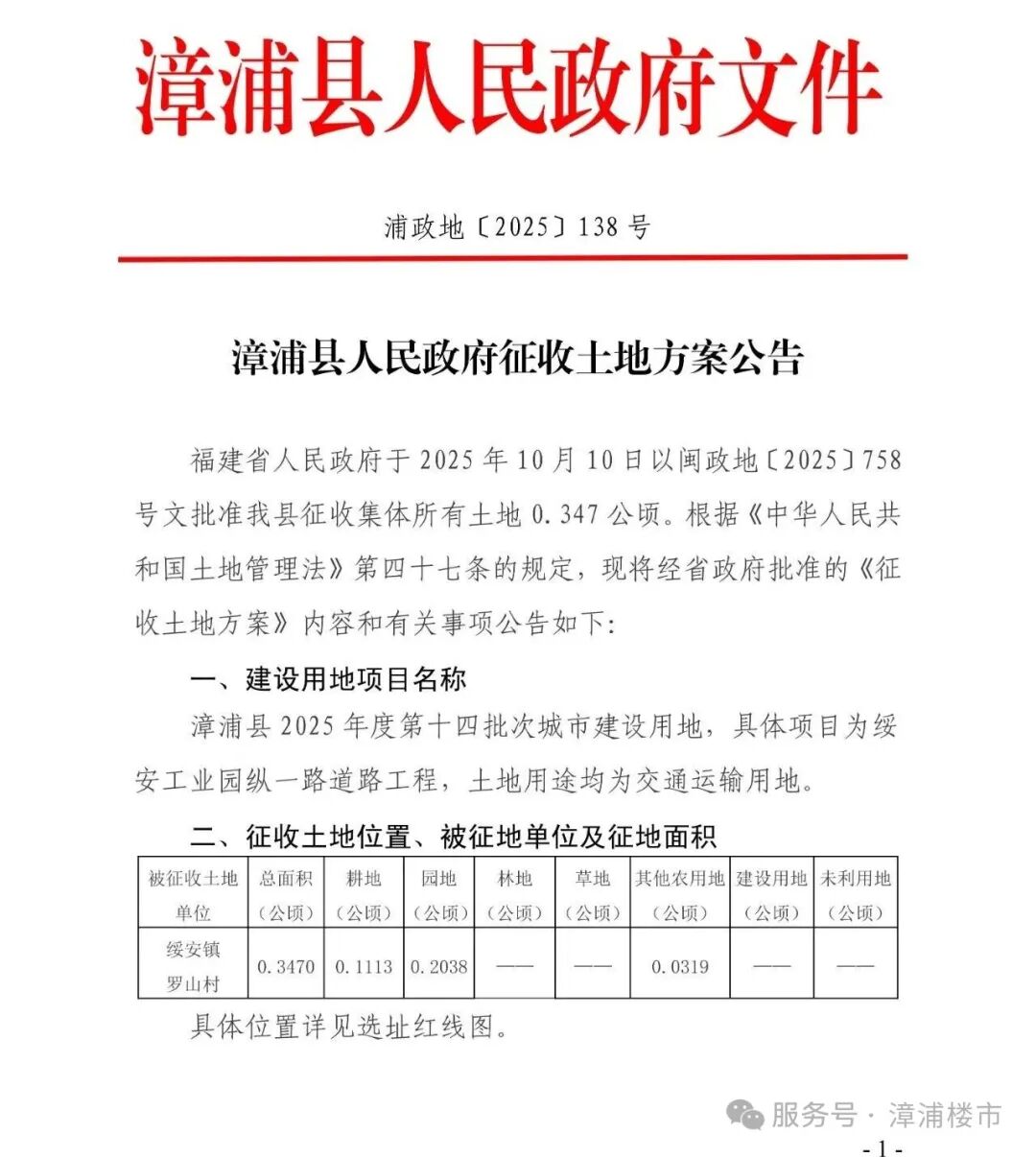 漳浦县2025年度第十四批次城市建设用地,具体项目为绥安工业园纵一路道路工程,土地用途均为交通运输用地。