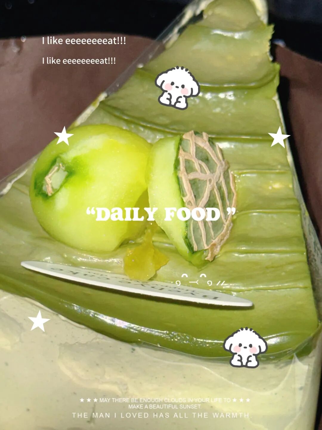 一口下去直接封神!茉莉奶油的花香超清新,一点都不齁甜,玫珑蜜瓜的汁水在嘴里爆开,脆嫩香甜,再加上抹茶的微苦回甘,层次超丰富。奶油是那种很细腻的动物奶油,顺滑不腻,连不爱吃甜食的朋友都炫了大半块😭