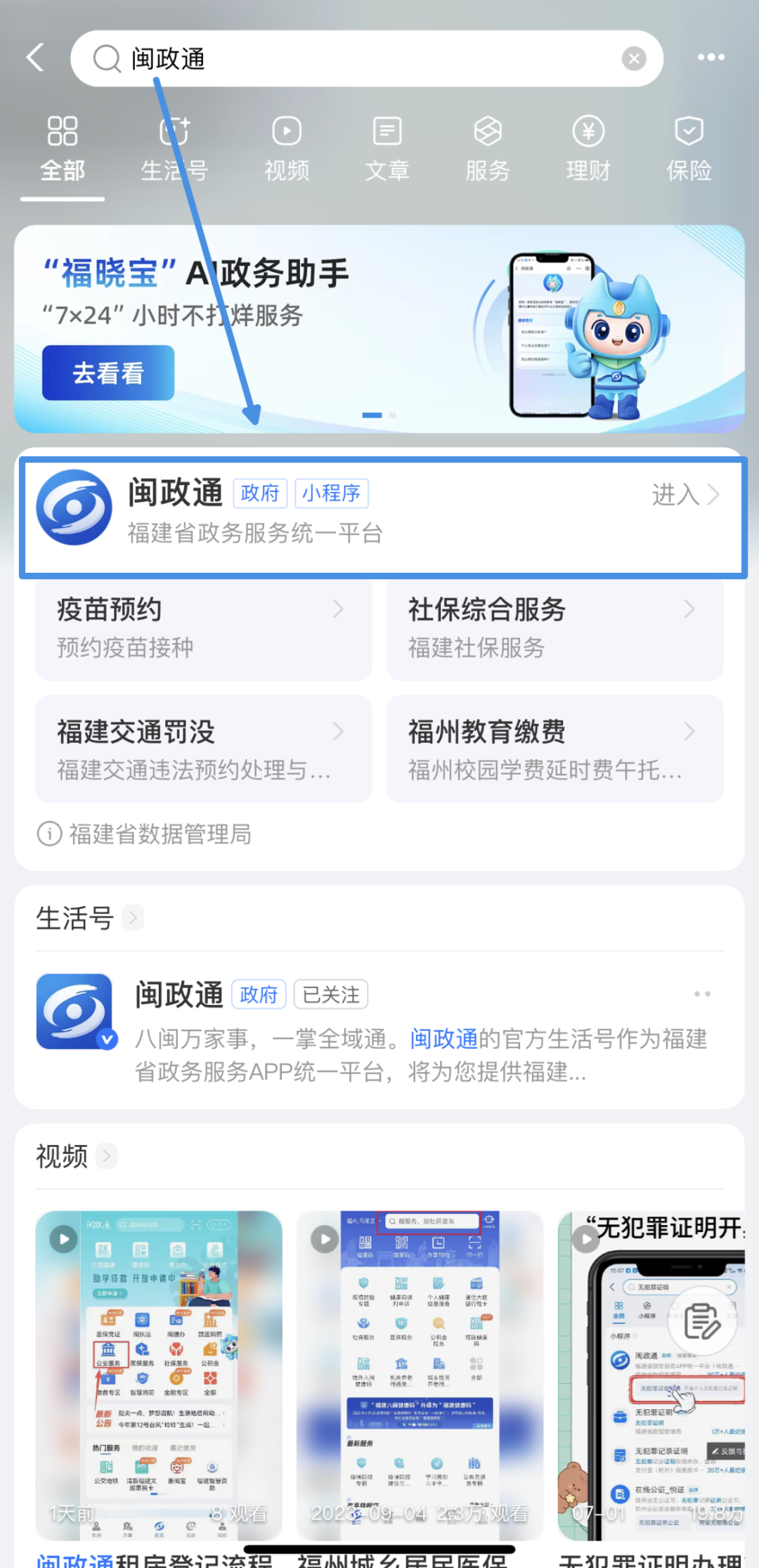 上支付宝搜“闽政通”小程序,进入小程序首页点击"育儿补贴申领“头图、“育儿补贴”服务或腰部banner图。